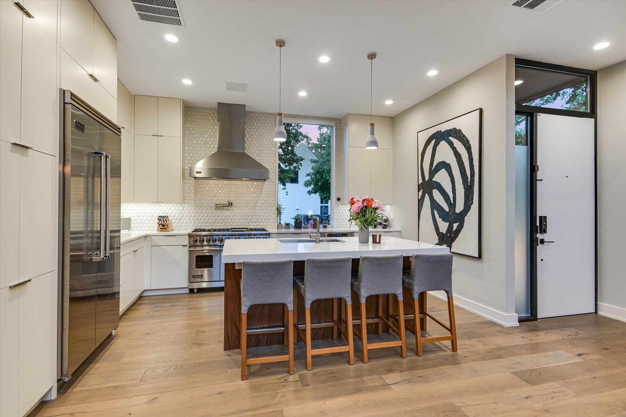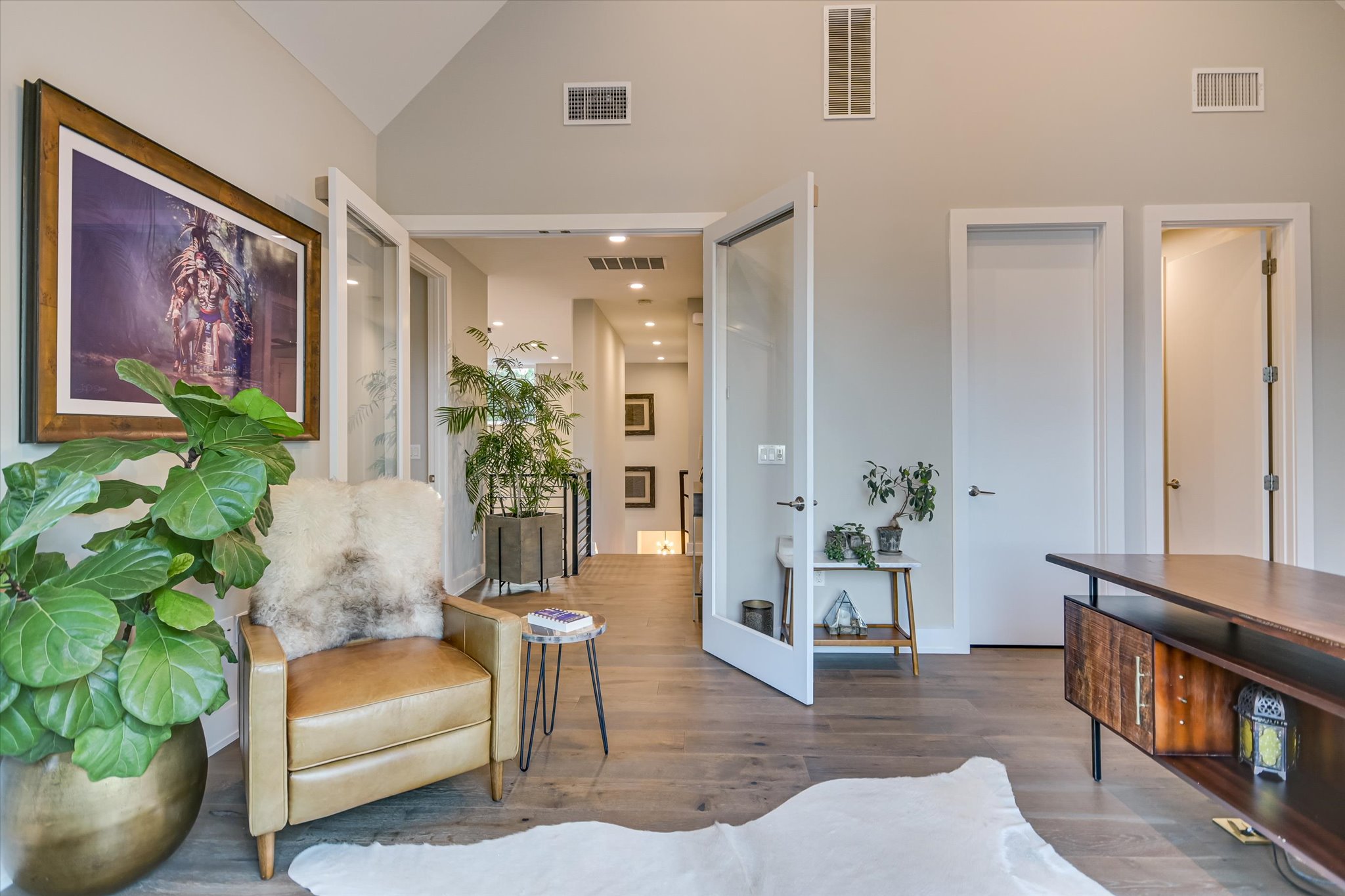 Striking contemporary townhome in Copeland Court, an intimate community of just 18 residences in vibrant 78704. Designed by Riverside Builders — renowned not only for their commitment to sustainability, but also for their exceptional attention to detail -- the development is reminiscent of a modern Scandinavian village; human-scaled and welcoming with a simple yet sophisticated aesthetic. Nestled within the enclave you might forget that you are in the middle of one of the most exciting neighborhoods in the city, but the minute you leave the complex you will be surrounded by everything that makes Austin special, including top rated schools. Anything you could want is within walking distance, from Snooze for breakfast to Alamo Drafthouse for a movie and beer at night; local, highly rated restaurants and shops dot Lamar Boulevard. Lady Bird Lake is just a mile and a half away, perfect for an afternoon cycle with a stop at a downtown lunch spot.