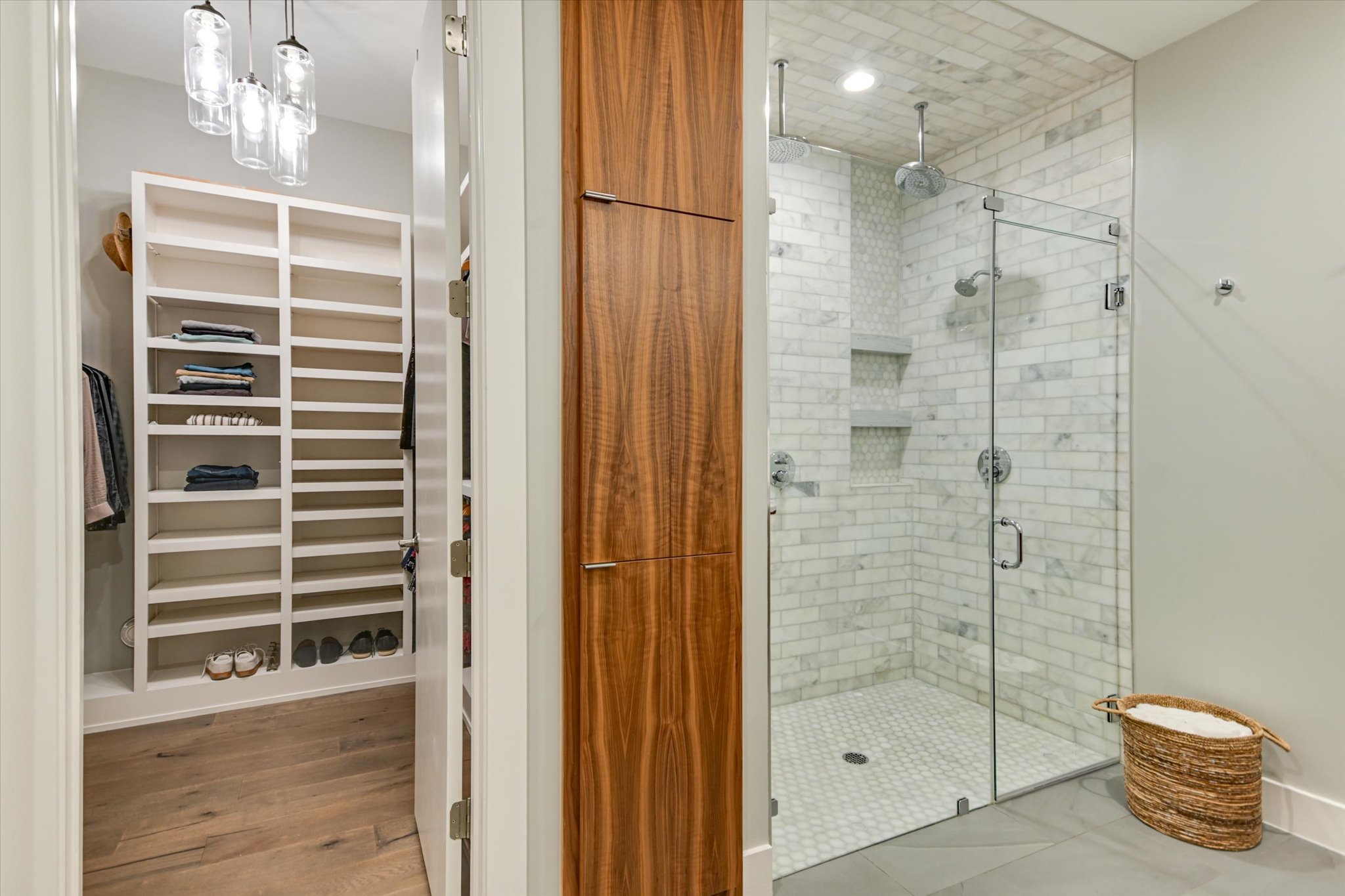 Built with health and sustainability in mind, the home features an EV charger, solar pool heater and unique EMF protection features in the primary bedroom. Additional luxuries include a 14-speaker Sonos system, automated shades in every room, an epoxy-floored garage with built-in storage, custom-designed lighting fixtures and custom closets in each bedroom.